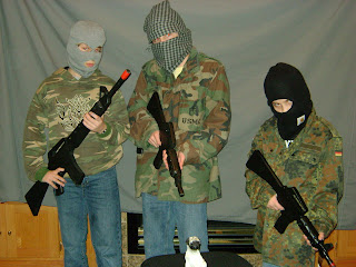 How embarrassing... not having an appropriate costume at this very upscale event. These young men were kind enough to provide me with this excellent costume. I believe I fit right in. What do you think?